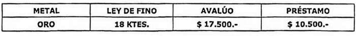 2. La resolución exenta Nº 675 de fecha 19 de diciembre de 2018, que "Fija nuevo avalúo de oro ley de fino 18 ktes para los créditos del rubro alhajas".