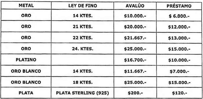 2. Fíjese nuevo avalúo por el gramo de metales nobles, utilizado por las Unidades de Crédito en el cálculo de los préstamos con garantía prendaria del rubro alhajas, según se detalla a continuación: