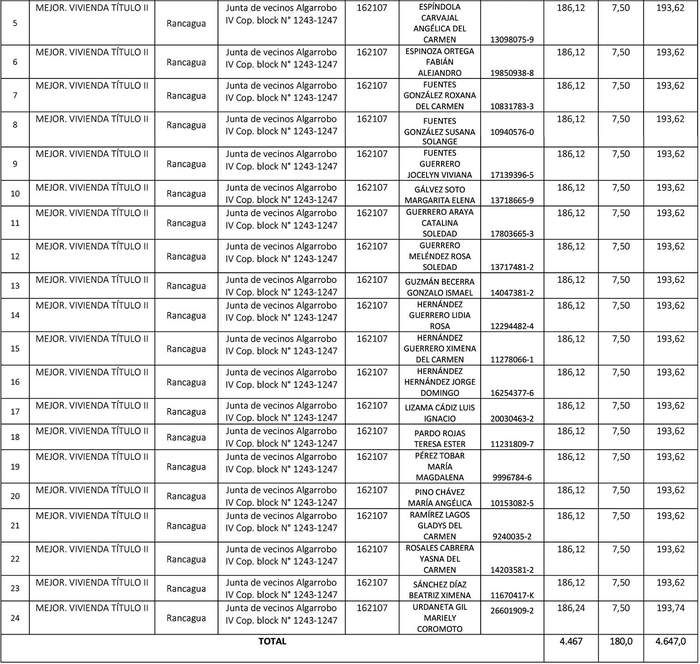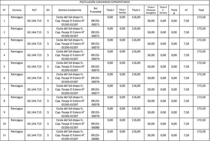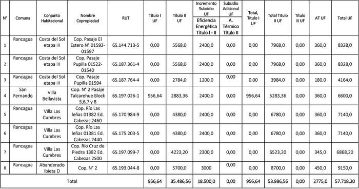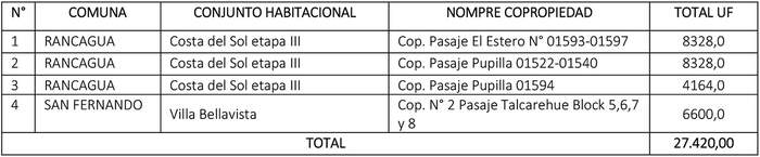 a) En su resuelvo N° 1, agregando los siguientes condominios sociales en la tabla adjunta en dicha resolución: