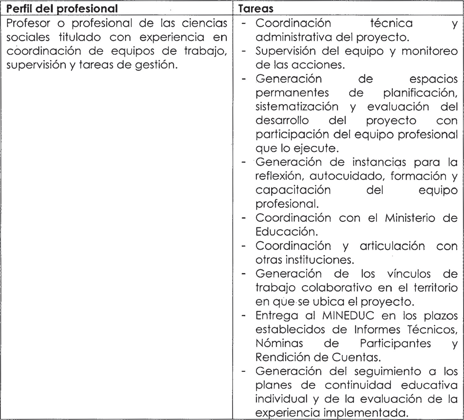 - El destinatario debe al menos estar un año fuera del sistema escolar, vale decir el año anterior al inicio del proyecto no registra matrícula en el Sistema de Información General de Estudiantes (SIGE).