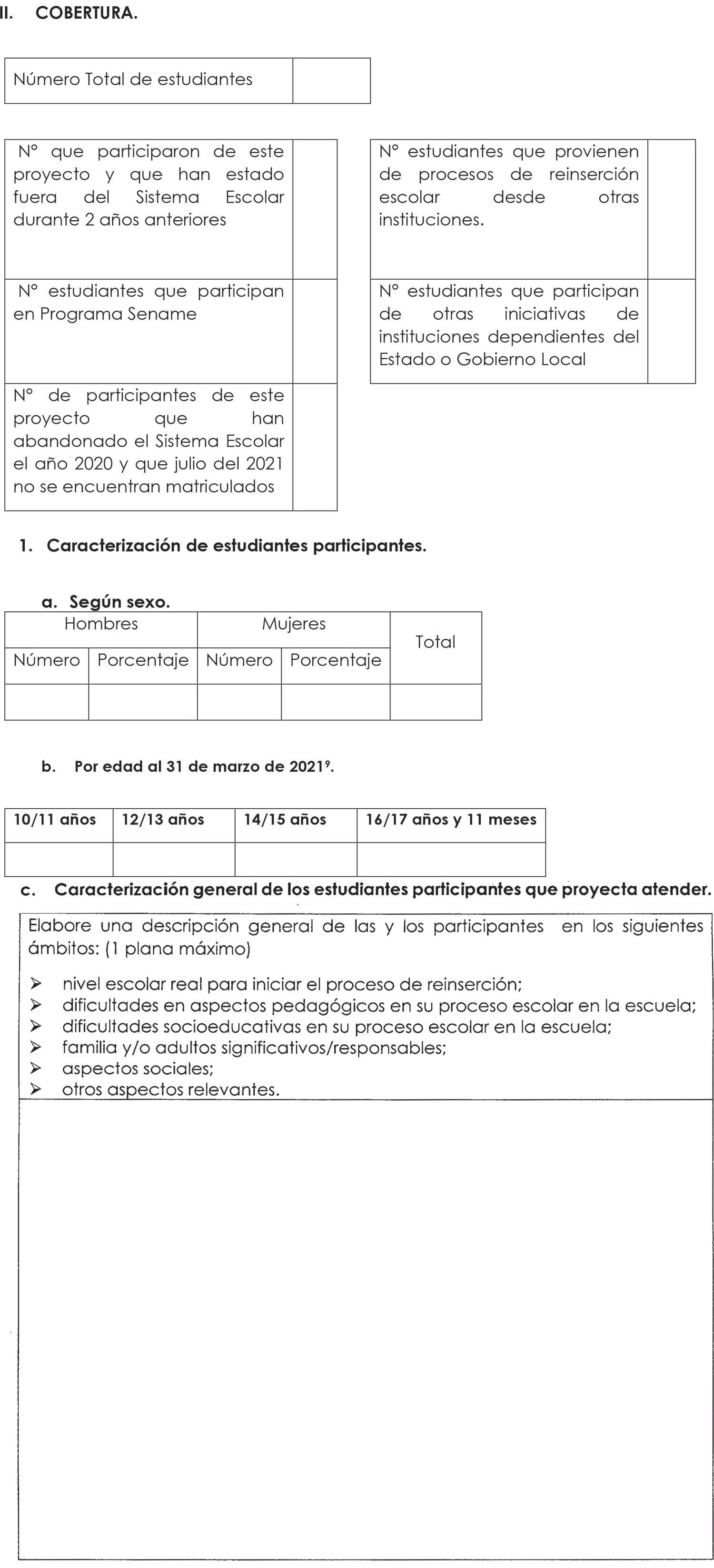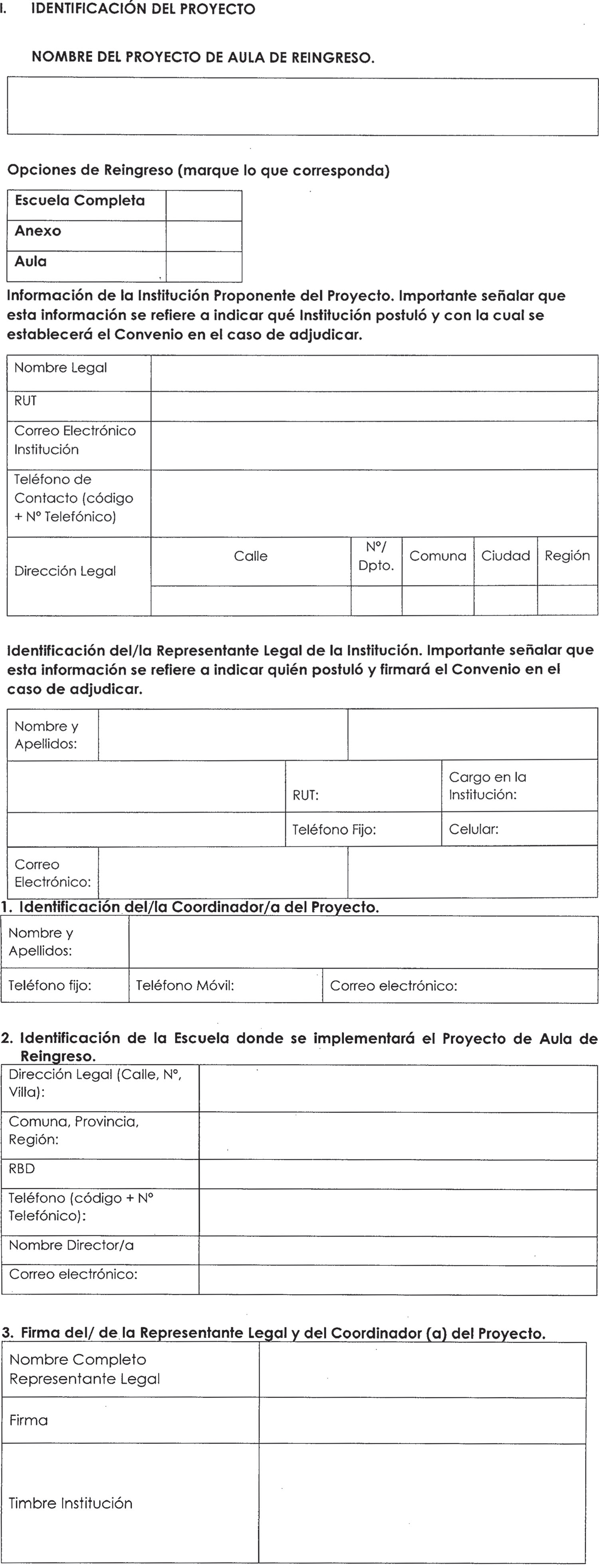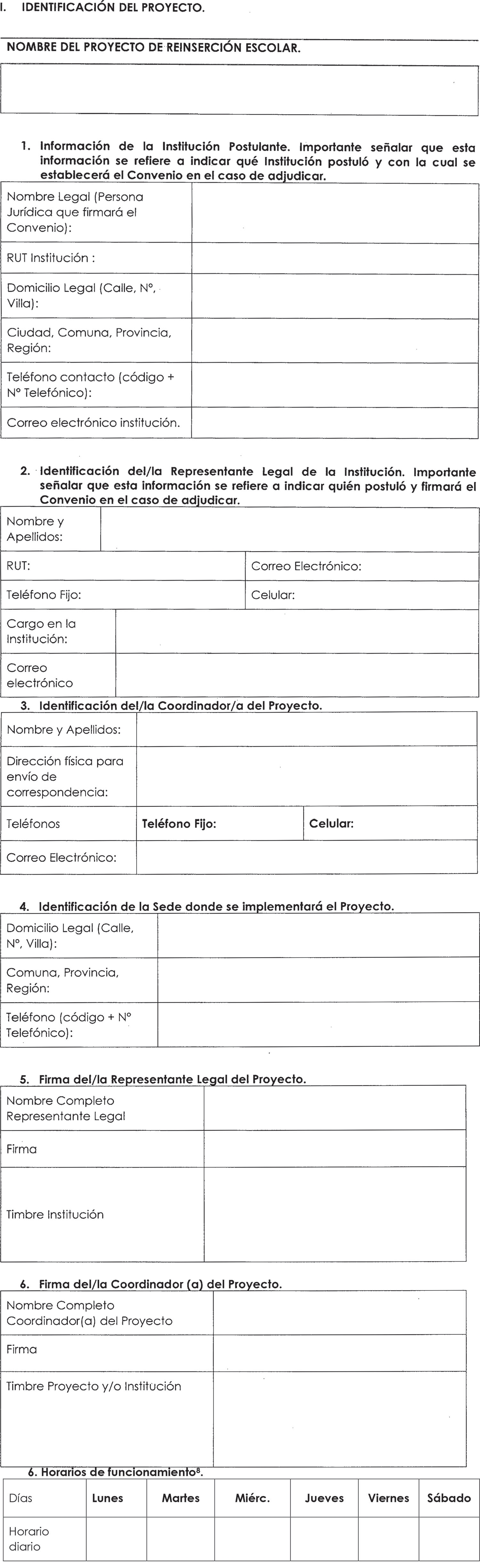 FORMULARIO DE PRESENTACIÓN DE PROYECTO DE REINSERCIÓN ESCOLAR AÑO 2021