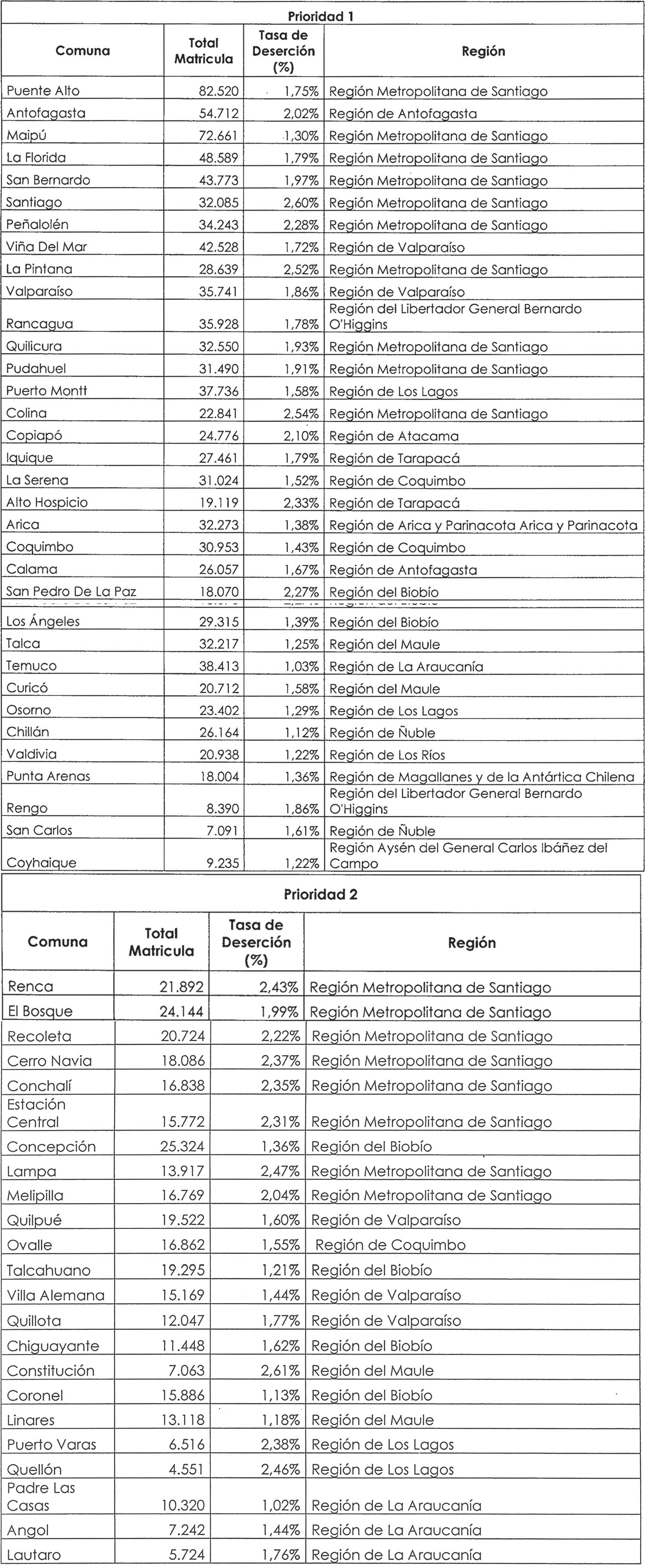 . Se priorizarán proyectos en comunas con alta prevalencia de población fuera del sistema escolar por 2 años o más de acuerdo con lo detallado en Anexo 4.