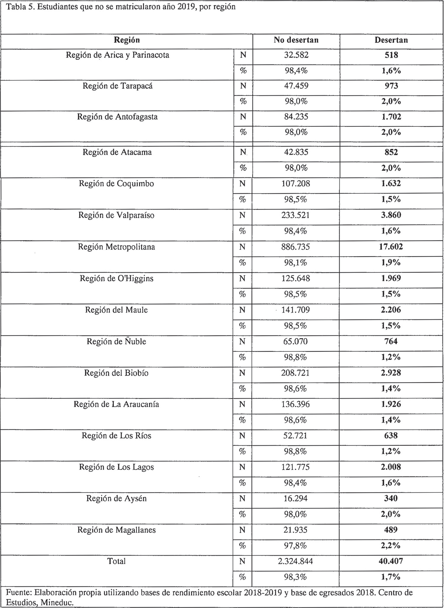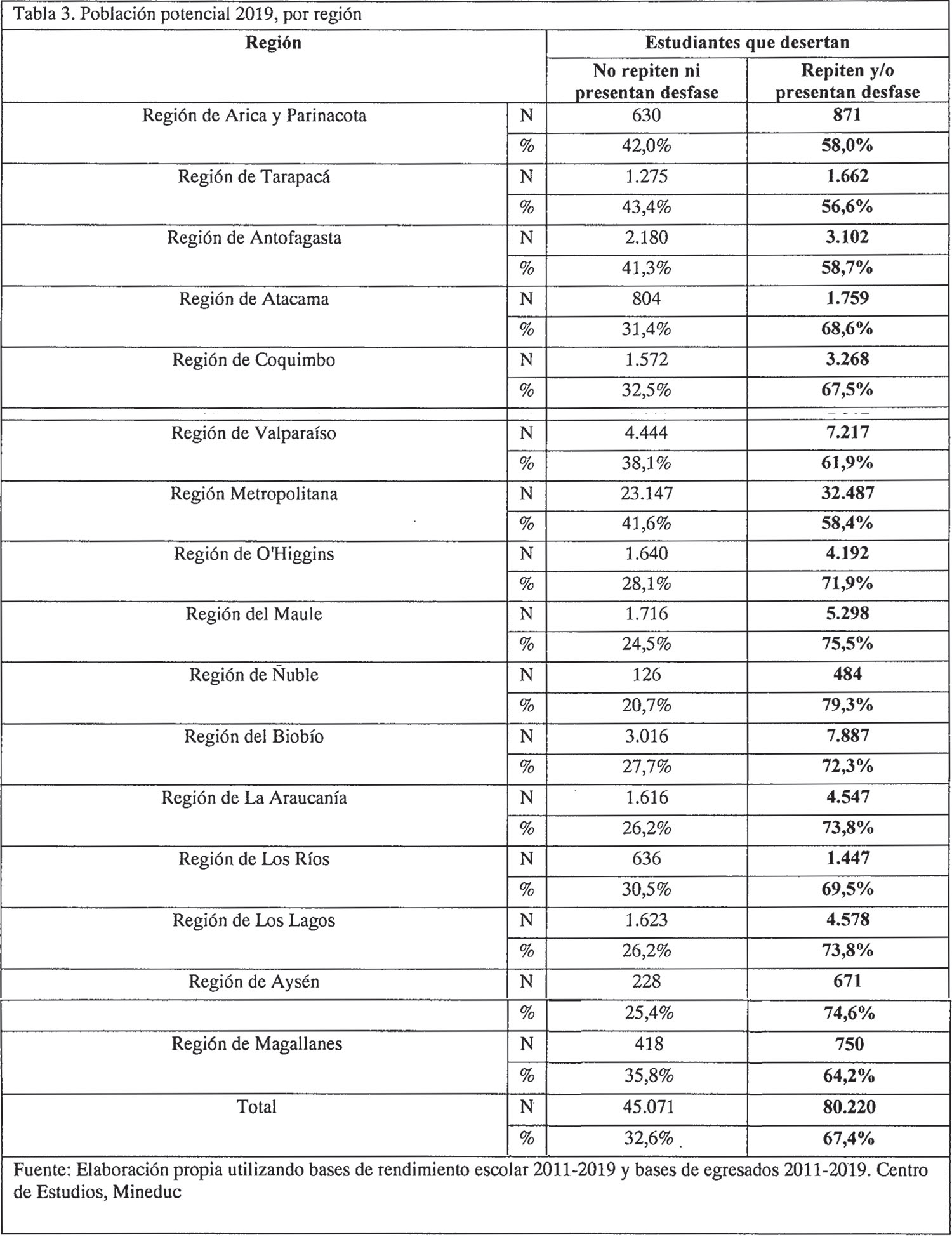 - No matriculados: No han terminado un año escolar y no se han matriculado en ningún establecimiento el año anterior previo al proyecto.