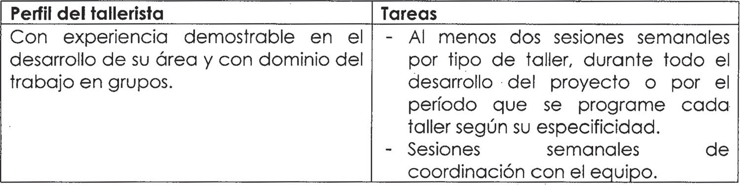 Las instituciones deberán contar con un espacio físico permanente para el funcionamiento del proyecto y de las actividades con los participantes.