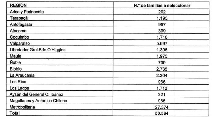 D.O. 15.09.20211.044.624 UF, correspondientes a 50.564 subsidios, los que se distribuirán según la tabla que se presenta a continuación, pudiendo practicarse mediante Resolución modificaciones, o incrementos de recursos, así como ser redistribuidos en las regiones incluidas en este llamado: