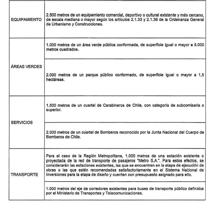 Las condiciones para la obtención del presente subsidio serán verificadas por el Serviu respectivo, durante el proceso de revisión de las postulaciones, mediante los medios electrónicos o plataformas georreferenciadas de que disponga. Igualmente, el Serviu podrá aprobar incrementos de hasta el 10% en las distancias señaladas en el cuadro precedente, cuando a su juicio los terrenos presenten condiciones adecuadas de localización, relativas a cercanía a otro tipo de bienes y servicios urbanos.