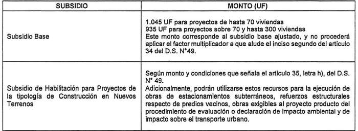 b) Subsidios para la construcción: Para la construcción de las viviendas podrán percibirse únicamente los siguientes subsidios y hasta por los montos que se indican:
