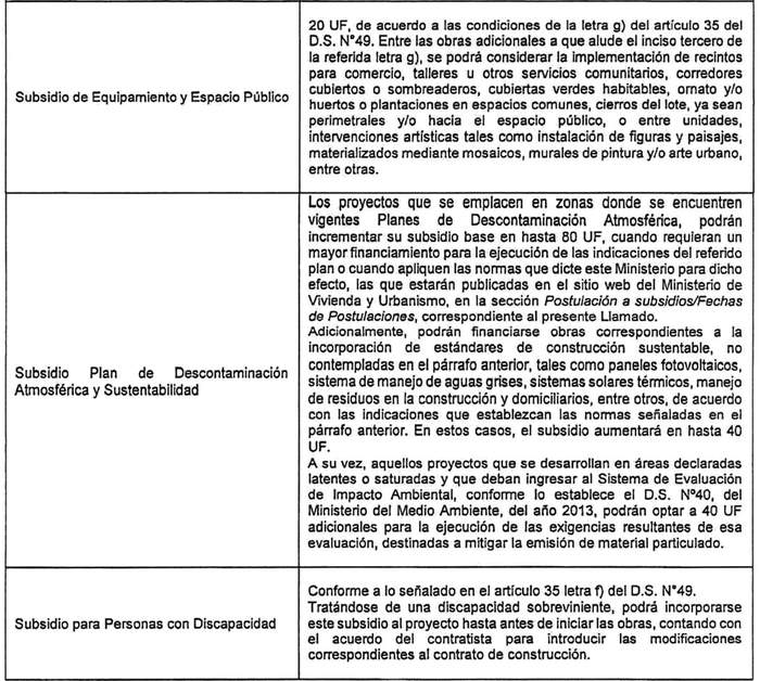 4. Para el presente llamado se aplicarán las disposiciones del DS Nº 49 (V. y U.), de 2011, con excepción de aquellas establecidas mediante esta resolución.