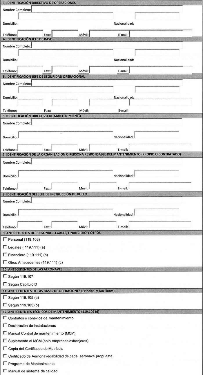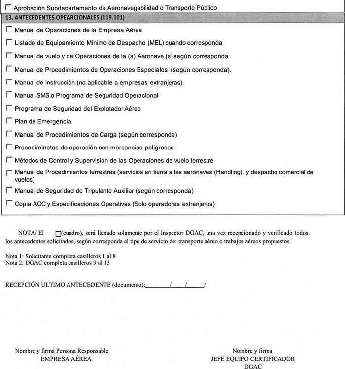 Documento que debe presentar el solicitante de un Certificado de Operador Aéreo (AOC), donde se detallan los requisitos de la DAN 119 y una breve explicación de la forma de cumplimiento.