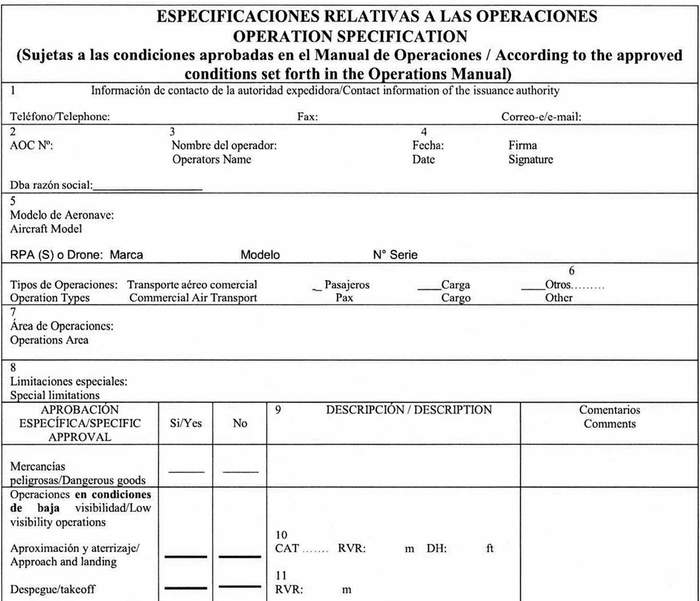 Es el documento propio de cada aeronave en el cual se establecen las autorizaciones, incluidas las aprobaciones específicas, condiciones y limitaciones en que esta puede ser operada conforme a lo establecido en el manual de operaciones.