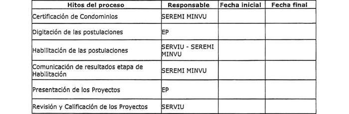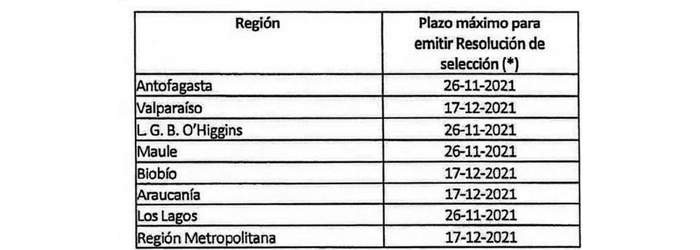 (*) Si las regiones lo estiman conveniente, podrán adicionar un nuevo cierre de selección, siempre respetando como fecha máxima la que se indica en el cuadro precedente. Las regiones que adicionen una nueva selección deberán informar por oficio las fechas a este Ministerio.
