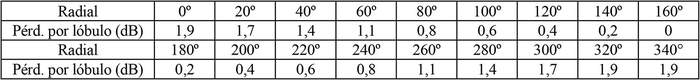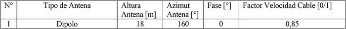 - Arreglo de antena de acuerdo a la siguiente tabla: