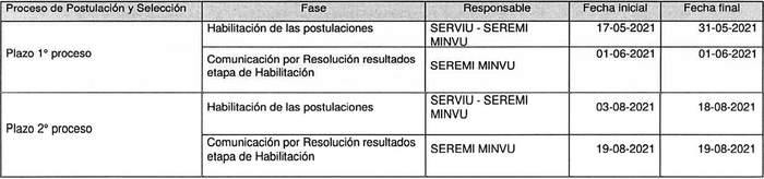 2. Los plazos correspondientes a los procesos y fases de postulación y selección de este llamado, serán los siguientes: