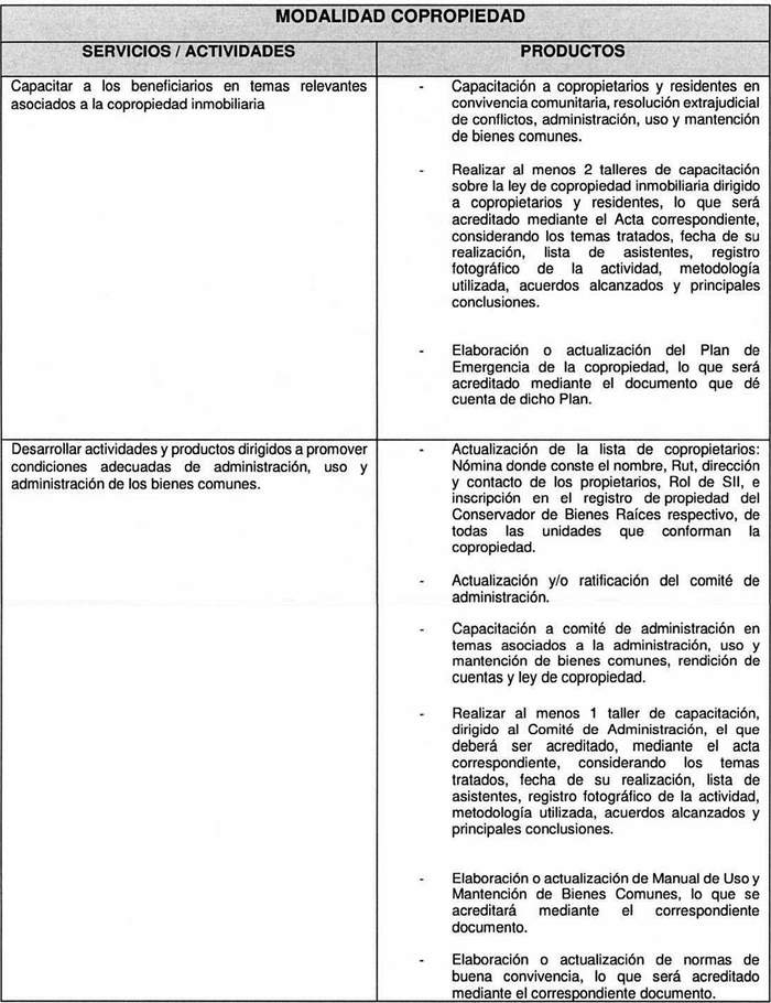 26. Establézcase a lo menos, los siguientes productos para Copropiedad Inmobiliaria de acuerdo a la resolución Nº 1.237 (V. y U.), de fecha 24 de mayo de 2019, según modalidad de postulación y selección: