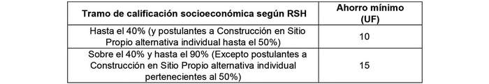 4.3. Los postulantes al presente llamado deben acreditar haber enterado el siguiente ahorro mínimo, conforme la calificación socioeconómica que presenten a la fecha de su incorporación al proyecto: