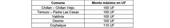 5.6. Los proyectos que se emplacen en zonas donde se encuentren vigentes Planes de Descontaminación Atmosférica, podrán incrementar su subsidio base en hasta 80 Unidades de Fomento, cuando requieran un mayor financiamiento para la ejecución de las indicaciones del referido plan. También podrán obtener este subsidio si la zona donde está ubicado el proyecto no tiene un PDA vigente y se opte por aplicar las normas que dicte este Ministerio para dicho efecto (www.minvu.cl/postulacion/llamado), excepto en las siguientes ciudades, en las que se podrá incrementar el subsidio base hasta los montos que a continuación se indican: