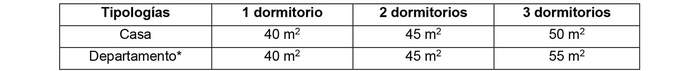 6.4. Los proyectos de las tipologías de Densificación Predial o Pequeños Condominios, dependiendo de la cantidad de personas que compongan el núcleo familiar acreditado al momento de ingresar el proyecto a Serviu, podrán considerar tipologías de vivienda que comprendan distinto número de dormitorios, las que deberán tener una superficie mínima según lo señalado en el siguiente cuadro: