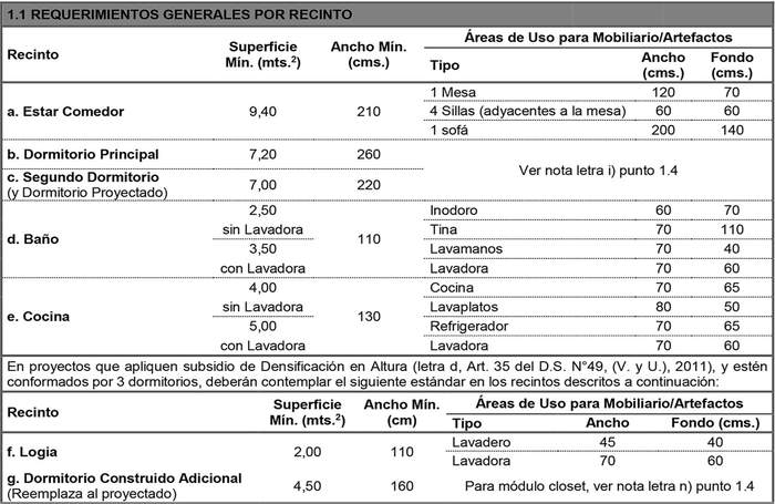 * Se entenderá como departamento aquella unidad de vivienda que cumpla con las condiciones para aplicar el subsidio de Densificación en Altura, al que hace referencia el literal d) del artículo 35 del DS Nº 49 (V. y U.), de 2011, o a las que correspondan, según lo determinado por la presente resolución.