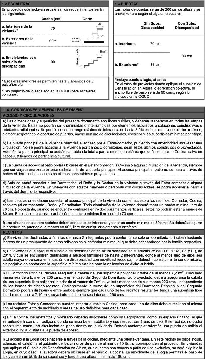 En todas las viviendas donde se aplique el subsidio complementario para personas con discapacidad (Art. 35 del DS Nº 49 (V. y U.), de 2011), además de cumplir con los requerimientos establecidos para la generalidad de las viviendas del programa, se deberá cumplir con las condiciones especiales detalladas a continuación: