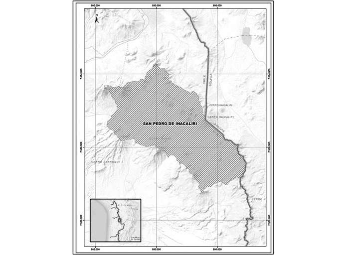 8.- Que, luego, el informe técnico determina la delimitación geográfica del sector hidrogeológico de aprovechamiento común San Pedro de Inacaliri, conforme la siguiente figura: