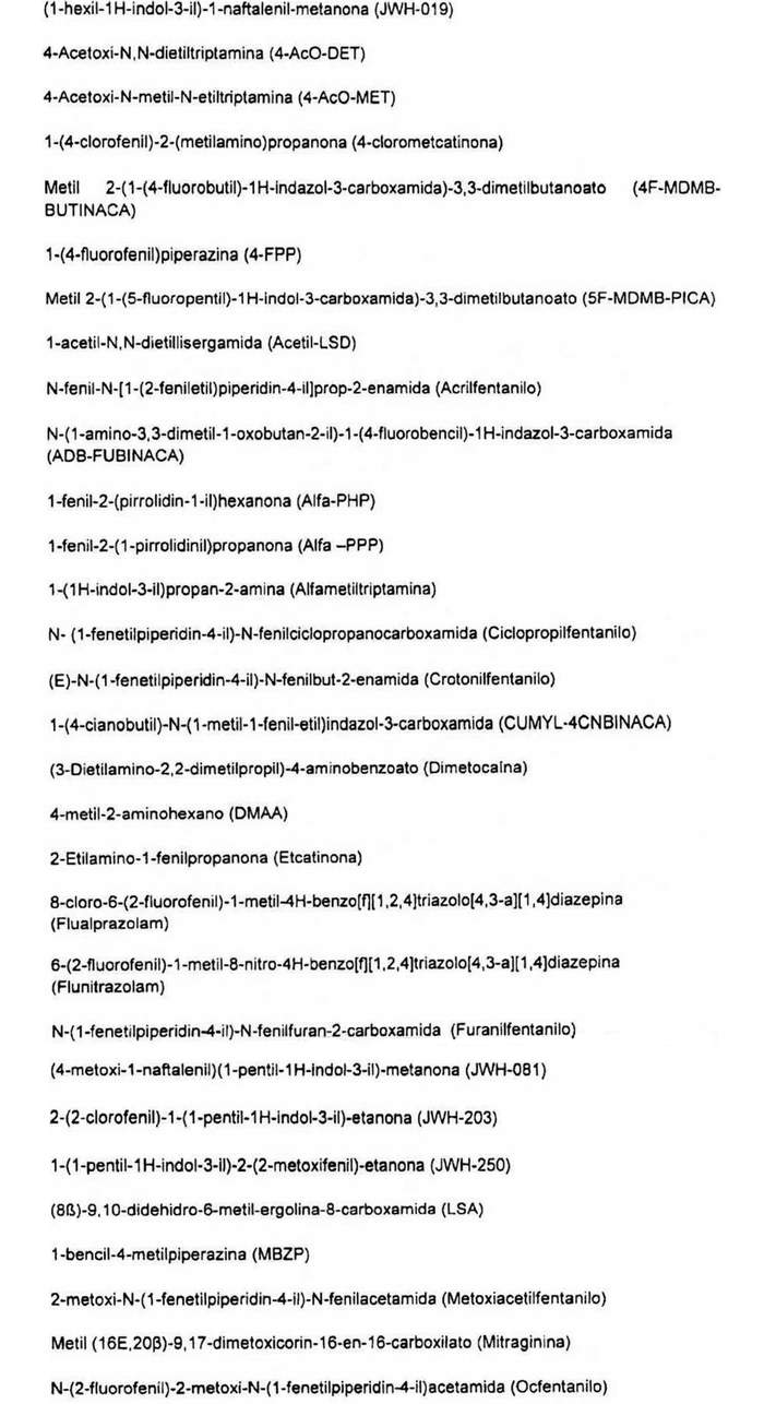 Artículo primero: Incorpórense al listado de sustancias o drogas estupefacientes o sicotrópicas del artículo 1°, del decreto supremo N° 867, de 2007, del Ministerio del Interior, actual Ministerio del Interior y Seguridad Pública, que aprobó el reglamento de la ley N° 20.000, las siguientes sustancias: