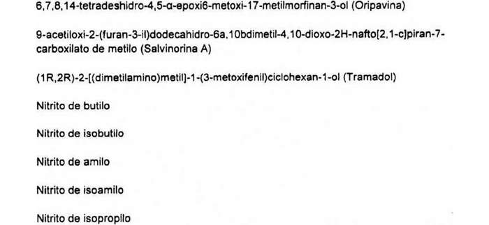 Artículo segundo: Incorpórese al listado del artículo 2°, del decreto supremo N° 867, de 2007, del Ministerio del Interior, actual Ministerio del Interior y Seguridad Pública, que aprobó el Reglamento de la ley N° 20.000, las siguientes sustancias: