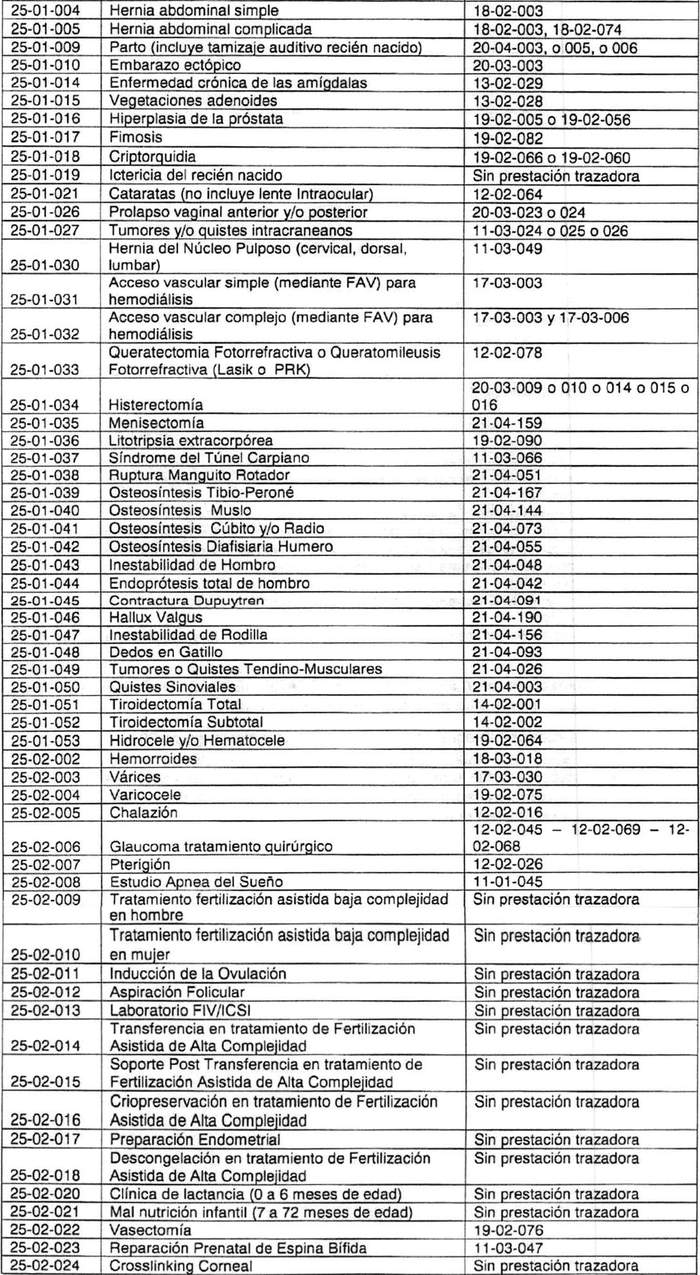 - Las prestaciones 25-03-001 hasta 25-03-006 tienen una frecuencia máxima de una prestación por beneficiario por año calendario.