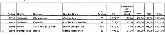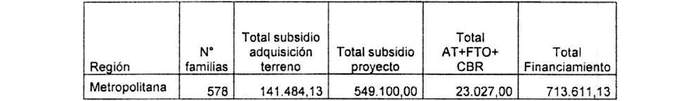 b) Reemplázase en el resuelvo 4, el guarismo "825.065,63" por "824.987,43" y en el cuadro inserto en dicho resuelvo, la fila correspondiente a la Región Metropolitana, por la siguiente: