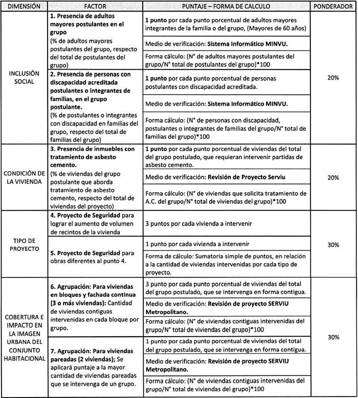 10. En caso que la demanda de proyectos exceda la cantidad de recursos disponibles para el presente llamado, la selección de los proyectos calificados por Serviu Metropolitano como hábiles, se realizará en estricto orden de prelación, de acuerdo a los criterios establecidos en la tabla que se indica a continuación: