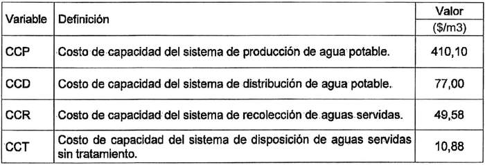 Al costo de capacidad del sistema de producción CCP se le deberá adicionar el costo denominado "Aportes de financiamiento reembolsables por capacidad de producción de agua potable a nivel de intermediarios para usuarios facturados por el concesionario Inmobiliaria Norte Mar S.A.", de acuerdo a lo señalado en el decreto tarifario de la empresa Esval S.A.