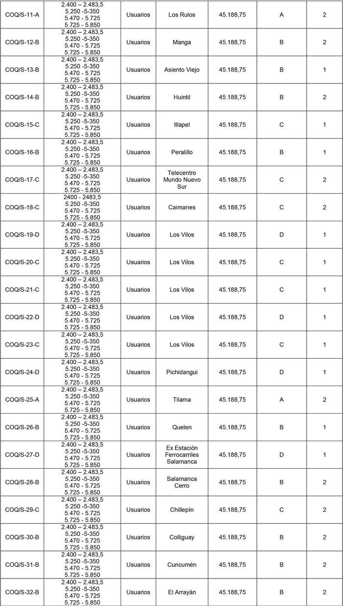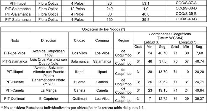 La Contraloría General ha dado curso al instrumento del rubro, que otorga concesión de servicio público de transmisión de datos a la empresa Chile TV Cable S.A., pero cumple con hacer presente que de acuerdo a los antecedentes tenidos a la vista el punto de acceso "COQ/S-26-B", que se instalará en la zona de Quelen, corresponde a la etapa 2, y no a la 1, como se indica en la tabla "Asignación de Frecuencias y Superficie Zona de Servicio Mínima", consignada en el numeral 1.1 del acto en estudio.