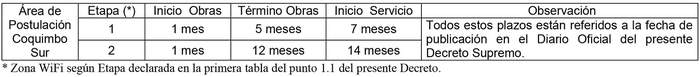 5. Los plazos máximos de implementación del Proyecto serán los que se indican a continuación: