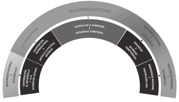 Además de su rol de defensa de la soberanía, integridad territorial e independencia política del Estado, nuestras FF.AA. cumplen importantes misiones en tiempos de paz, en labores de seguridad, presencia y protección de intereses en nuestro territorio y en contribución a la respuesta ante emergencias y catástrofes naturales. Ellas despliegan una capacidad operativa y logística que ha permitido colaborar en forma eficaz y oportuna a las autoridades civiles en aquellos momentos en los cuales nuestros conciudadanos más lo han necesitado. Prueba de ello ha sido el reciente despliegue de miles de hombres y mujeres cumpliendo sin descanso ni pausa distintas funciones en apoyo a nuestros conciudadanos durante la emergencia sanitaria global por COVID 19.