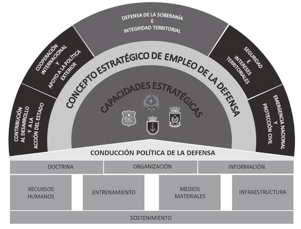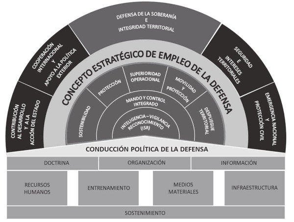 Este documento recoge y desarrolla los aportes y consensos transversales logrados en las últimas décadas en nuestro país respecto a los principios, objetivos y Áreas de Misión de la Defensa, define la postura frente a nuevos escenarios de seguridad, desarrolla una estrategia de la Defensa, con Conceptos de empleo de Capacidades estratégicas que permiten cumplir con los objetivos y áreas de misión definidas. Los desafíos que se derivan de esta estrategia permiten, a su vez, orientar el desarrollo de las capacidades estratégicas que requiere el país.