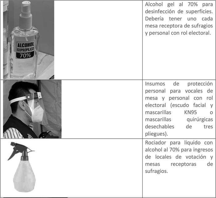 - A su cargo, los apoderados de los candidatos deberán llevar sus propias mascarillas y alcohol gel para higienizar sus manos periódicamente, manteniendo en todo momento la distancia física, de lo contrario no podrán desempeñar sus funciones. Las mascarillas podrán ser del tipo KN95 o quirúrgicas desechables de tres pliegues que cubra nariz y boca debiendo hacer un recambio de éstas cuando estén húmedas, dañadas o visiblemente sucias (con un uso no superior a 4 horas) en los locales de votación. Será opcional el uso de otros elementos de protección personal y no está permitida la propaganda en ninguno de los elementos de protección personal.