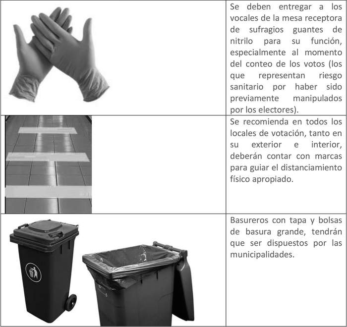 - Los vocales de la mesa receptora de sufragios podrán opcionalmente antes del conteo de votos usar guantes de nitrilo, sin embargo, será obligatoria la desinfección periódica de las manos sea que se utilicen o no los guantes.