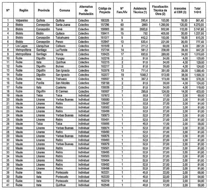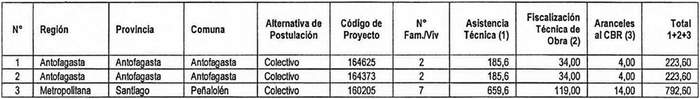 3. El monto del subsidio asignado de conformidad con el cuadro del Resuelvo 2. de esta resolución comprende los siguientes montos por concepto de Servicios de Asistencia Técnica, de Labores de Fiscalización Técnica de Obra y pago de Aranceles al Conservador de Bienes Raíces:
