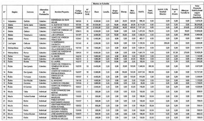 Los literales e, f, g, h, i, j del numeral 2 de la Resolución 1536 Exenta, Vivienda, publicada el 05.10.2021, modifican las tablas insertas del Anexo Único, respectivamente, en el sentido que la citada norma indica.