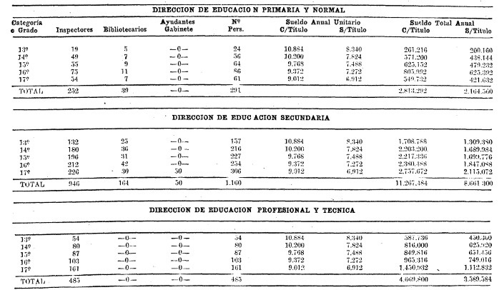 Artículo 1.o - Fíjase la siguiente Planta Paradocente del Ministerio de Educación Pública, a contar desde el 1.o de Enero de 1968: