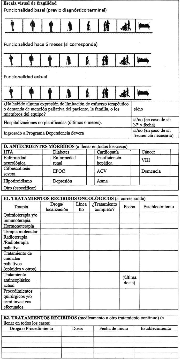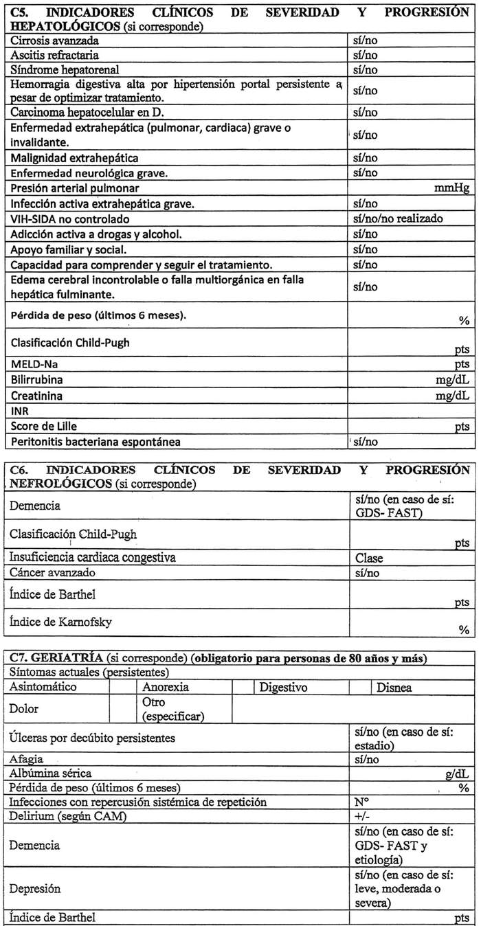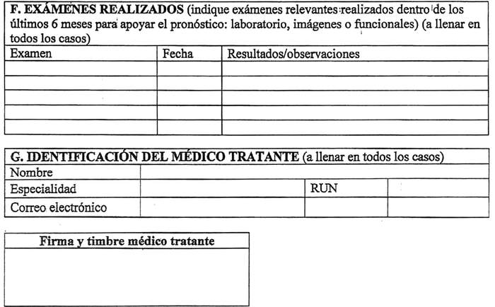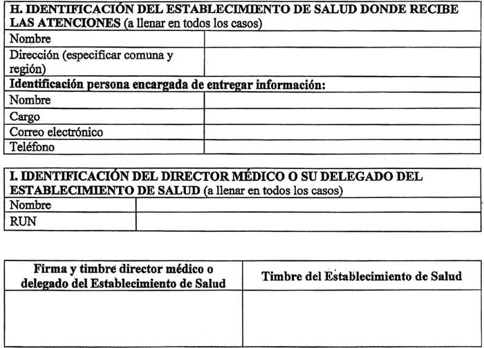 NOTA: Si necesita más espacio sólo escriba en el casillero que automáticamente se ampliará. Las secciones A, B1, D, F, G, H e I son obligatorias, las otras secciones se deben llenar según la patología principal.