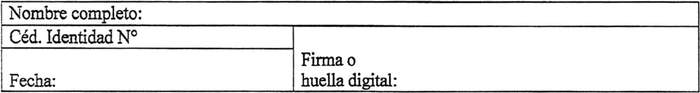 Quien suscribe, en conocimiento de los derechos que me confiere la ley 19.628, sobre la protección de datos personales y sensibles, con ocasión de mi solicitud de pensión y calificación de certificación como enfermo terminal que se encuentra en trámite según lo establecido en la Ley N° 21.309, autoriza al Consejo Médico y al Consejo Médico de Apelación (en el caso de un eventual reclamo) para que soliciten antecedentes y/o accedan a la revisión de mis fichas clínicas ambulatorias y/u hospitalarias de los prestadores de salud públicos y privados en que me he atendido, extrayendo la información relevante que sea de utilidad para el único fin de fundamentar debidamente la certificación de enfermo terminal.