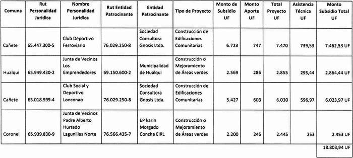 Serviu Región del Biobío, mediante un aviso en un periódico de circulación regional, pondrá en conocimiento de los postulantes el lugar y la fecha en que serán publicadas las nóminas de los seleccionados y los respectivos proyectos, conforme al artículo 29 del DS N° 27 (V. y U.), de 2016.-