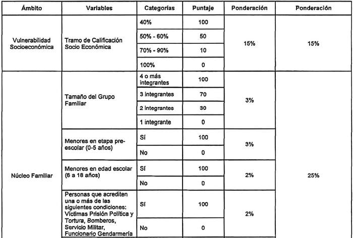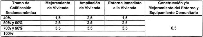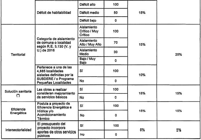 (*) Para optar a este puntaje el proyecto deberá resolver el déficit sanitario de la vivienda y no se otorgará este puntaje para mejoras de terminaciones.