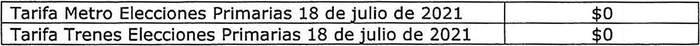2º Instrúyase, a los correspondientes prestadores de servicios complementarios, la implementación de la modificación de estructura tarifaria que por este acto se ordena, para ser aplicada el día 18 de julio del presente año en el Metro de Santiago y en el tramo Alameda-Nos del servicio de trenes operado por Trenes Metropolitanos S.A.