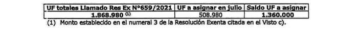 D.O. 16.12.2021508.980 Unidades de Fomento y el remanente para los siguientes procesos de selección, es de 1.020.000 Unidades de Fomento, conforme se indica en la siguiente tabla:
