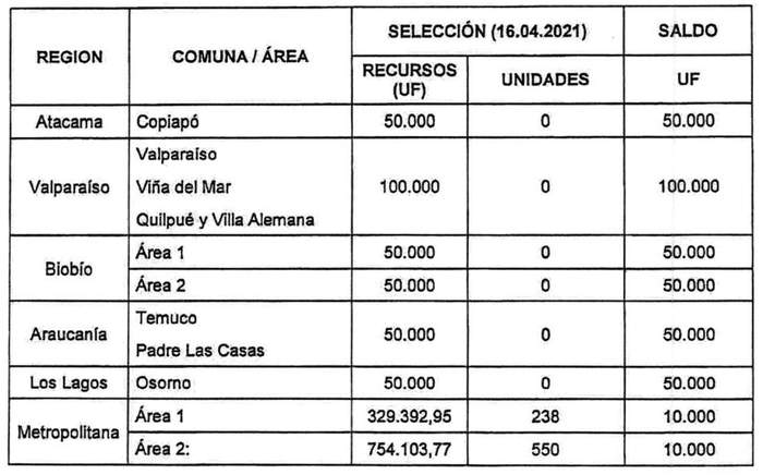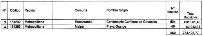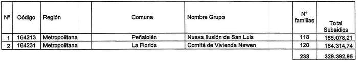 3. El detalle de los recursos comprometidos por concepto de subsidio para la adquisición del terreno y subsidio para la construcción, para las postulaciones seleccionadas en el resuelvo anterior y que por este acto se asignan, se informa en el cuadro que se adjunta como anexo y que forma parte integrante de la presente resolución.