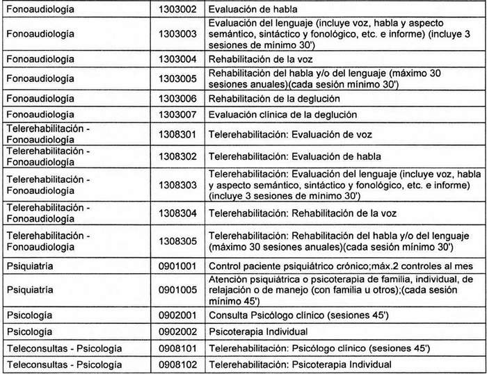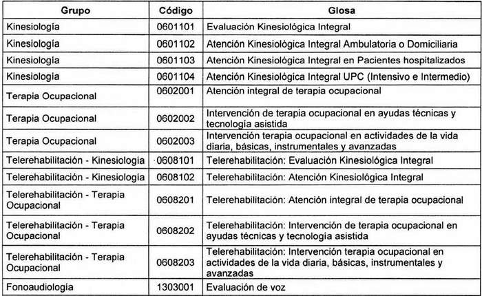 h) Durante el periodo de vigencia de Alerta Sanitaria decretada por el Ministerio de Salud, por brote Covid-19, las siguientes prestaciones efectuadas por profesionales Terapeutas Ocupacionales podrán realizarse en forma remota, manteniendo registro de estas prestaciones en los mismos términos que una atención presencial.