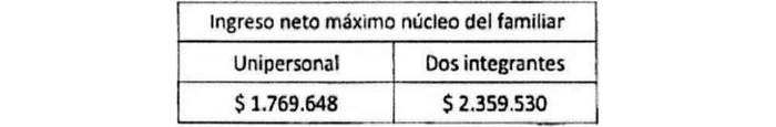 Si el núcleo familiar declarado excede de dos, por cada integrante adicional el ingreso neto se incrementará en $235.953. Para efectos de calcular el límite máximo de ingresos netos, se considerará hasta dos integrantes adicionales.