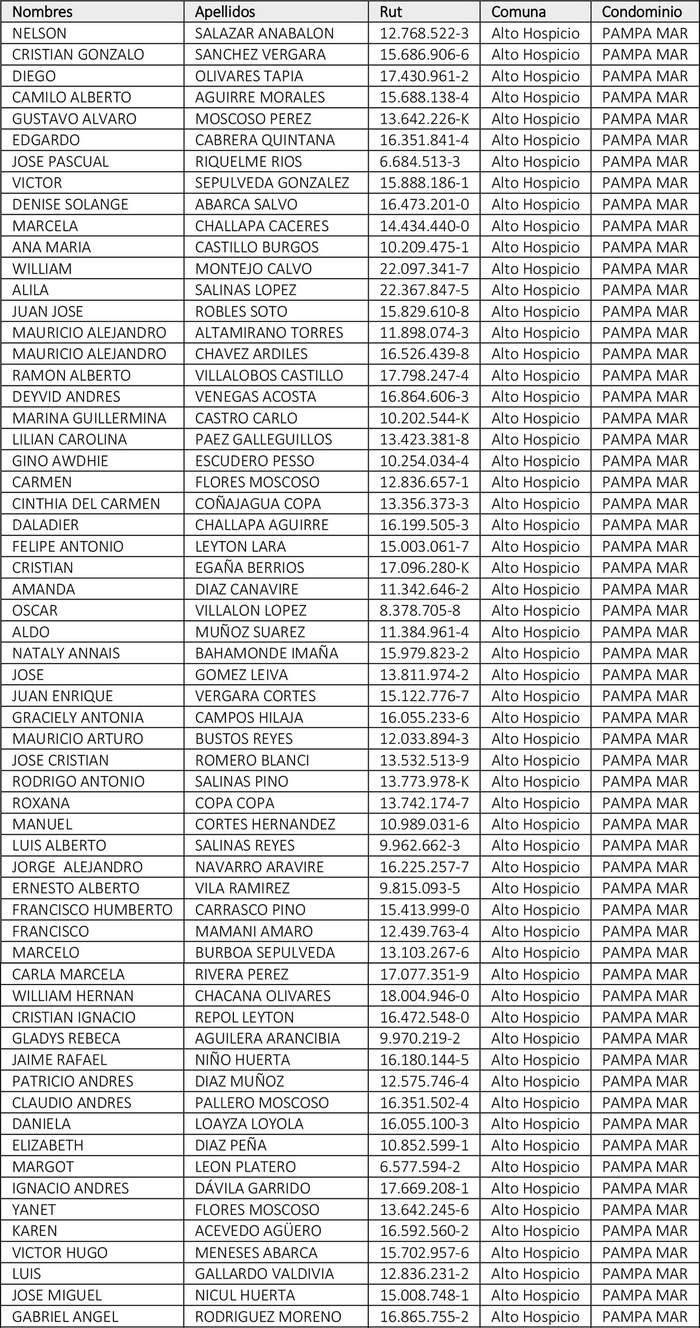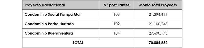 d) Que el Serviu Región de Tarapacá ha calificado los siguientes proyectos: