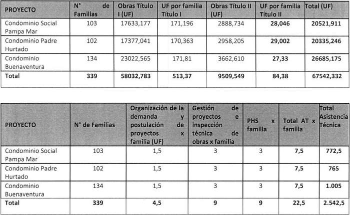b) El oficio N° 1032/2021, de Serviu Tarapacá, que informa los proyectos aprobados en el proceso de Postulación del llamado con Selección Regional destinado a la Atención de Condominios de Viviendas Sociales emplazados en Suelo de Condición Salina, con un total de 339 Unidades aprobadas, según consta en Acta de aprobación de proyectos, fecha 9 de julio de 2021.